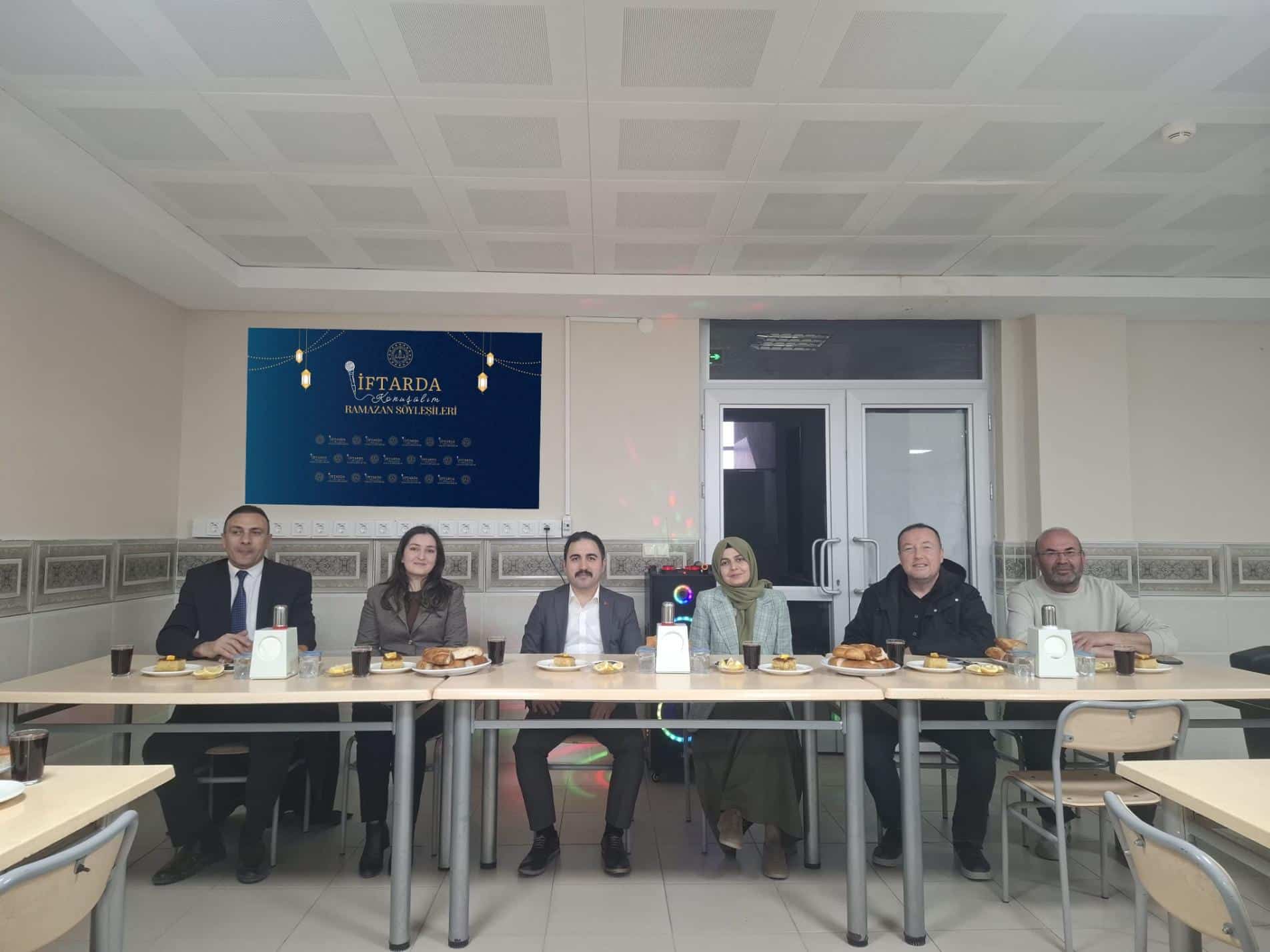 Cumhuriyet Başsavcısı Sn. Veli Duman, Cumhuriyet Savcısı Sn. Esra Çolak, İlçe Sağlık Müdürü Sn. Meryem Betül Yeşil, İlçe Milli Eğitim Müdürümüz Sn. Olcay Günay, yönetici ve öğretmenlerimizin katılımıyla gerçekleştirilen "İftarda Konuşalım Ramazan Söyleşileri" programında; Ramazan ayının maneviyatı, paylaşmanın önemi ve geleceğe dair sıcak sohbetler gerçekleştirildi.