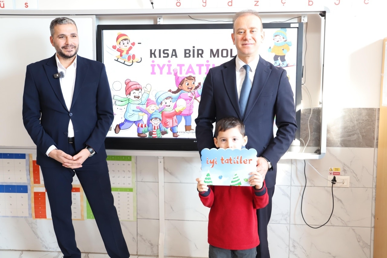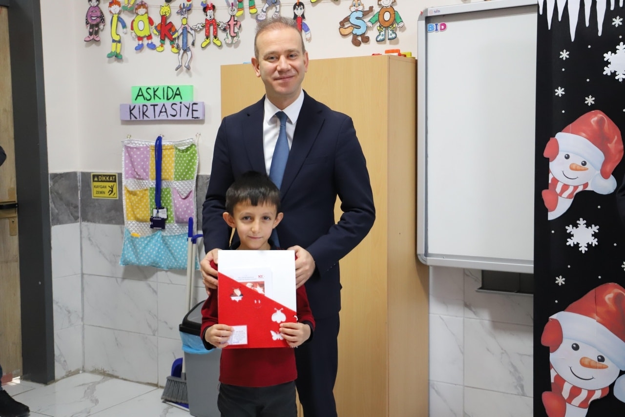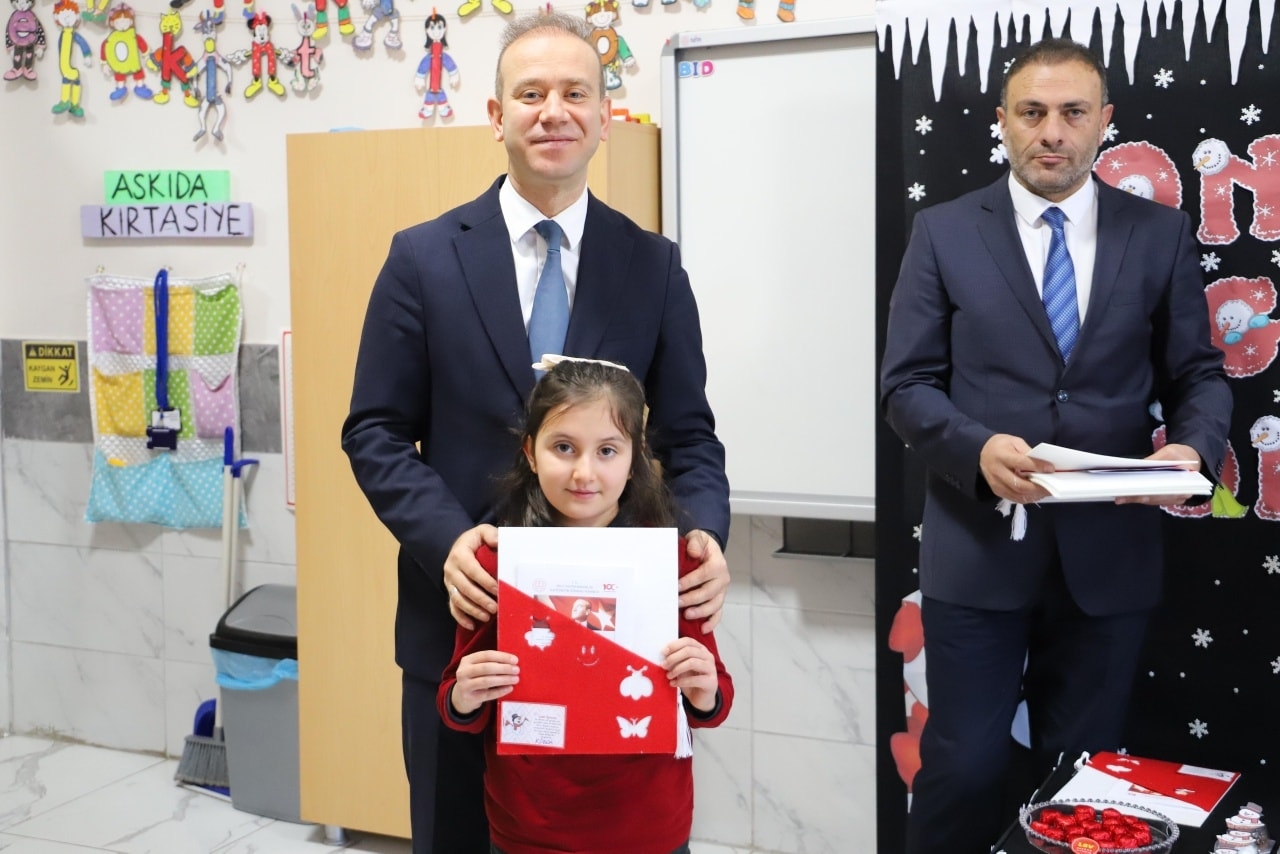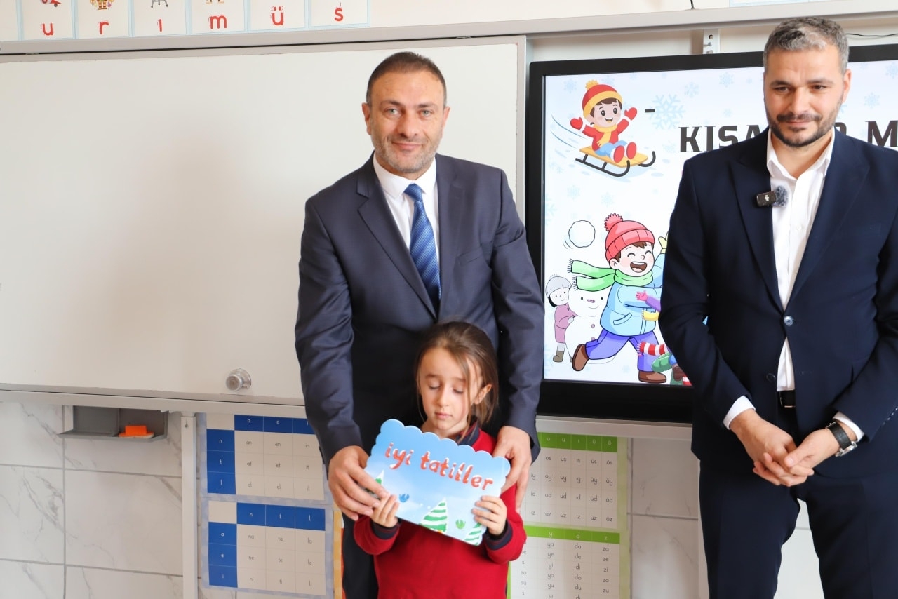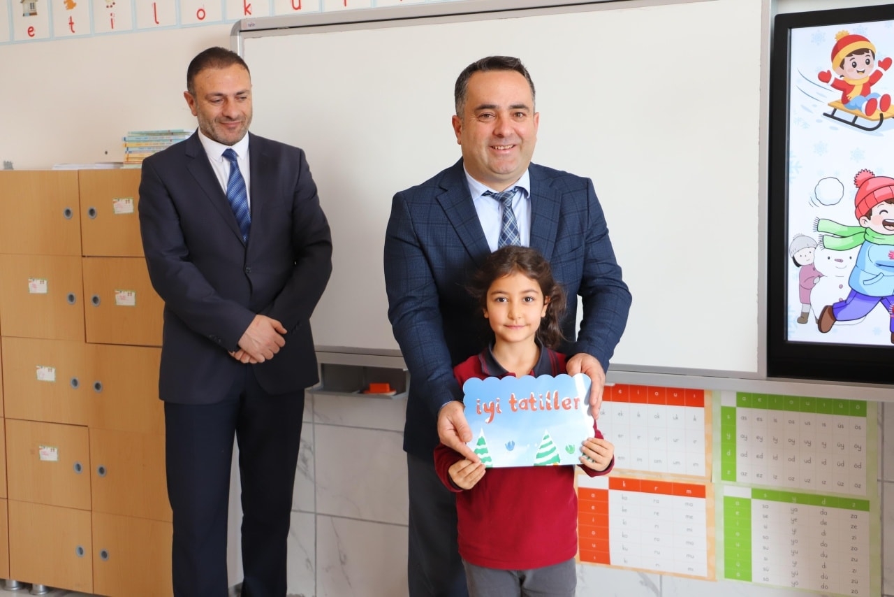 Öğrencilerle bir araya gelen Sn. Kaymakamımız, Sn. Belediye Başkanımız ve Sn. İlçe Milli Eğitim Müdürümüz, sınıfları ziyaret ederek öğrencilere karnelerini takdim etti.