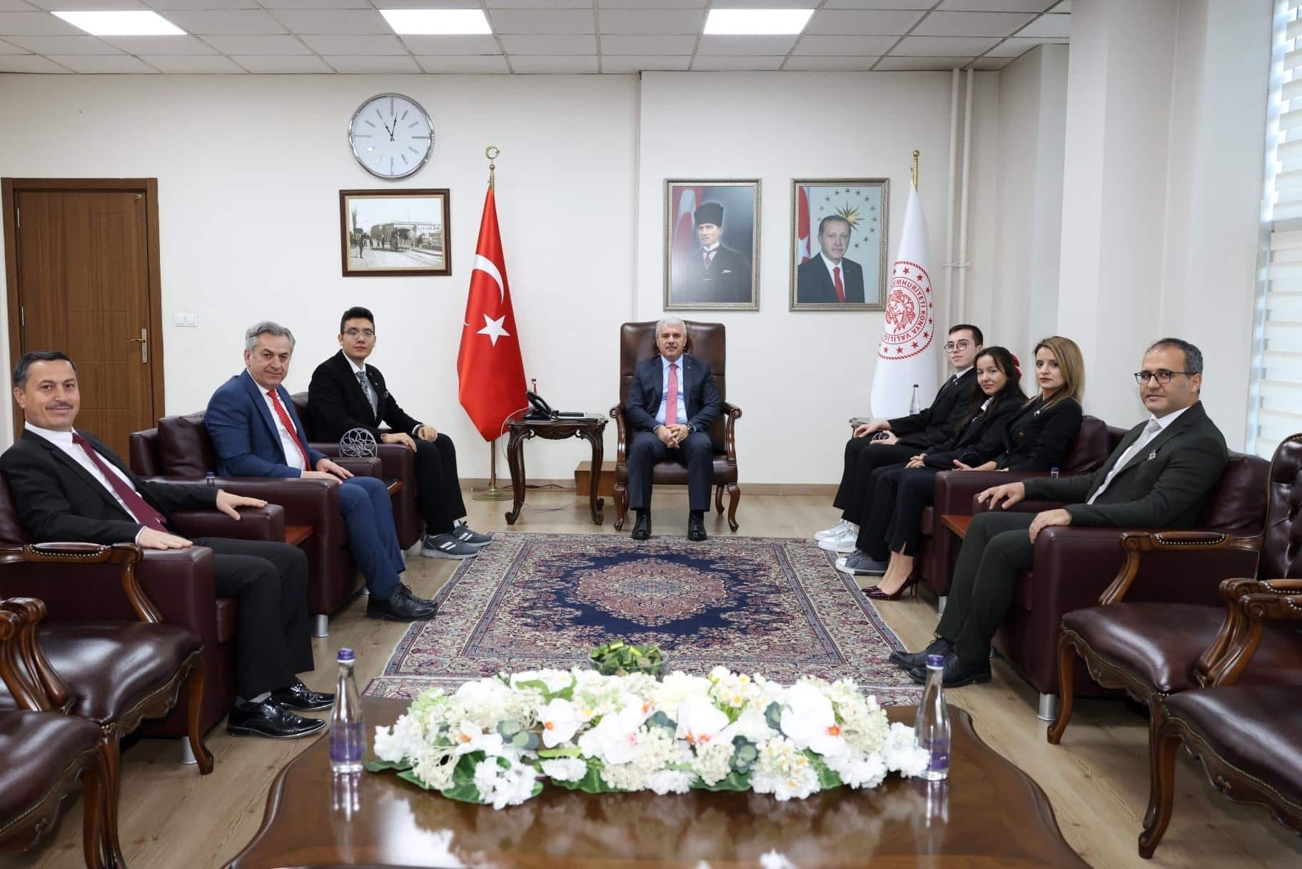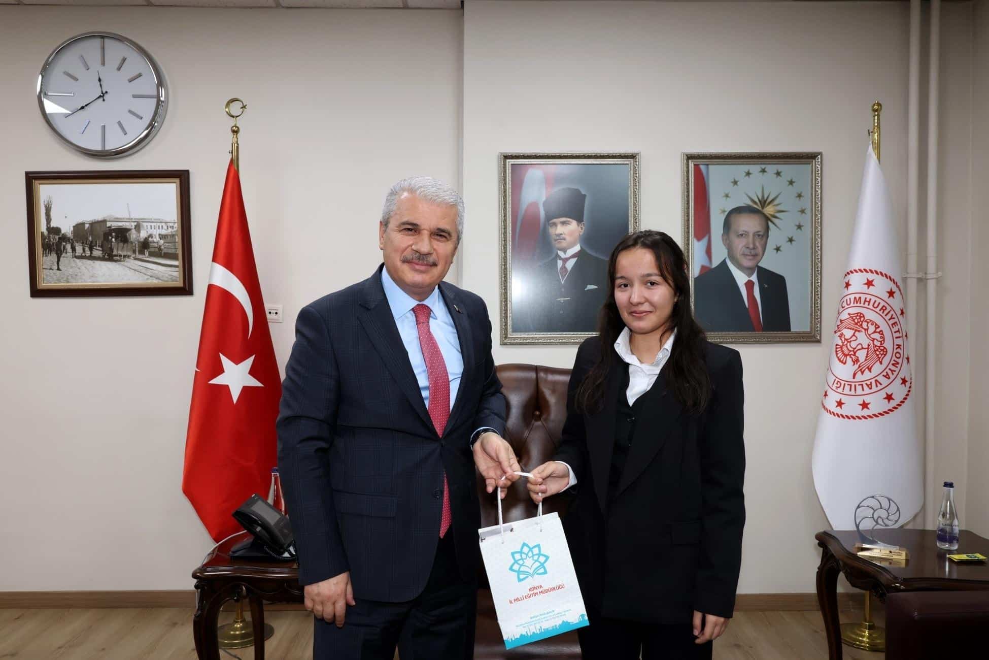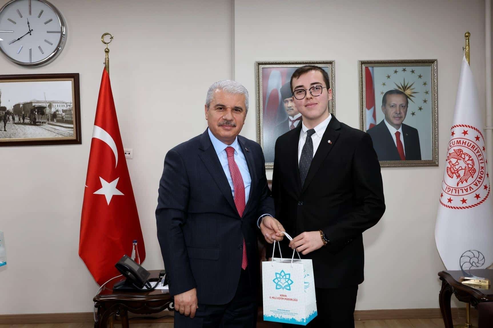 Konya Valisi Sn. İbrahim AKIN, İtalya'da düzenlenen Uluslararası Fibonacci EuroAsia Robot Olimpiyat yarışmasında Dünya Şampiyonu olan Ilgın Ticaret Borsası Fen Lisesi öğrencilerimiz, Beytullah Demir, Ömer Faruk Keskin, Elizan Kızılay, danışman öğretmenimiz Melek İltar Çin, Okul Müdürümüz Fikret Koca'yı makamında misafir etti. Ziyarete İl Milli Eğitim Müdürü Sn. Murat YİĞİT ve İlçe Milli Eğitim Müdürümüz Sn. Mustafa Kılınç da eşlik ettiler. Konya Valisi Sn. İbrahim AKIN, ziyarette elde edilen başarıdan dolayı öğrenci ve öğretmenlerimizi tebrik ettiler.